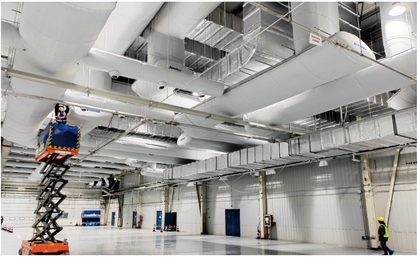 纤维织物保温风管重量轻,对钢结构减少荷载,滑杆悬挂,安装简便,节省施工人工及机具费用。