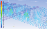 在观众席区域:采用N系列索斯纤维织物风管系统,环绕场地弧形风管布置,运用LLAD远距离层流送出风技术,设计多排开孔结合微渗透材质,精准设计喷孔尺寸,方向和数量来实现不同射程与末端风速的控制,形成层流结构式送风。既能满足观众席的均匀送风,外观上又与建筑完美结合。