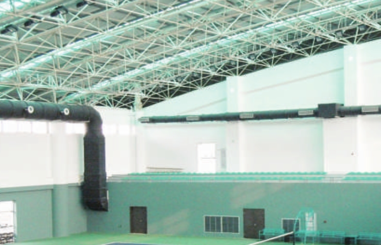 这类场馆湿气大,要求空调风管需防止屋顶或顶棚结露,同时消除冰面雾气。传统风管点式送风,气流不均匀,运行易凝露滴水,不易维护。