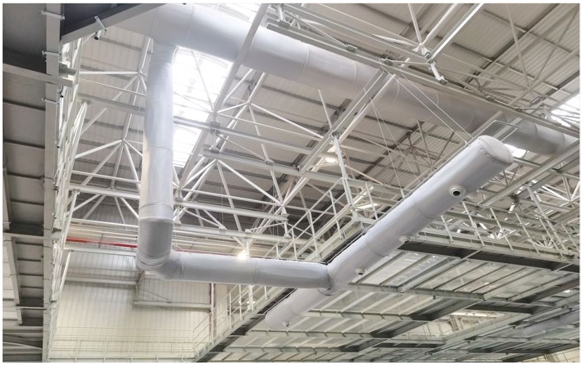 根据长安汽车规划要求,园区建设主打“绿色低碳”的环保理念,索斯风管为该项目提供柔性风管系统解决方案, 风管供货面积达40000㎡。覆盖总装、焊装、冲压三个主要厂房。
