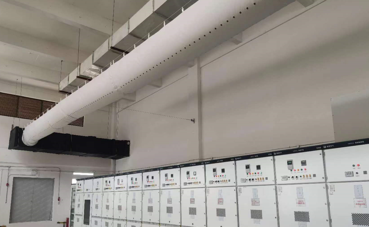 在非吊顶车间:针对岗位点精准送风,风管长度50m内采用索斯风管均匀出风,超长则采用绝热索斯开孔出风