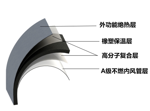 1、风管采用高密封绝热索斯保温风管,双拉链密封工艺,胶膜涂覆技术,保证风管保温性能稳定的同时,减少了建筑结构的承重,外观更美观;