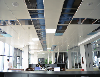吊顶场所方案:设计绝热索斯保温风管连接索斯纤维织物散流器或传统风口出风 ,采用IPBA风管系统内压力均衡调节技术,通过等阻风的风管布局,管内配合独有的纤维织物导流阀,使复杂系统中不同位置的分支管压力平衡。