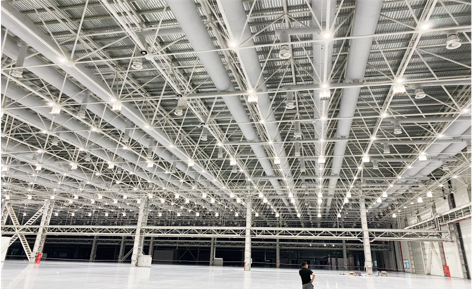 风管设计绝热索斯保温风管,简洁的直管布局,均匀分布在展馆上空,采用SFNE静音型织物喷嘴射流出风技术,通过纤维织物喷嘴出风,利用织物的柔韧特性,有效降低喷口处射流噪音,同时使气流高速送达下方展区,节能宁静。