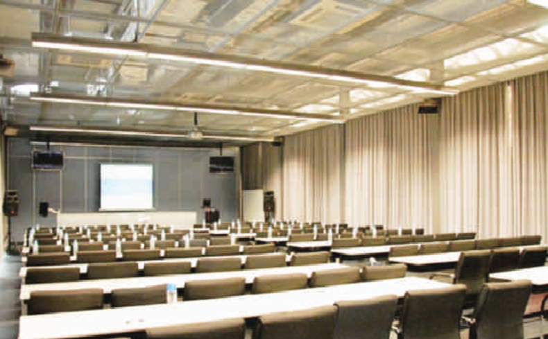 采用组合式空调,侧送风或吊顶内布置风管送风。
