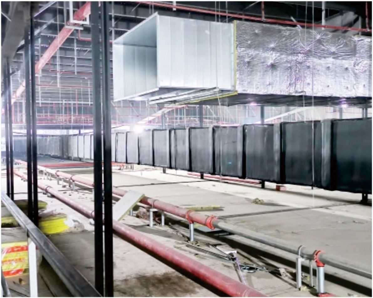 1. 采用纤维织物保温风管远距离均匀出风技术,通过精确计算管径,并合理设置阀件,确保远距离风管系统前后端阻力平衡,实现风管近端与远端的均匀送风。